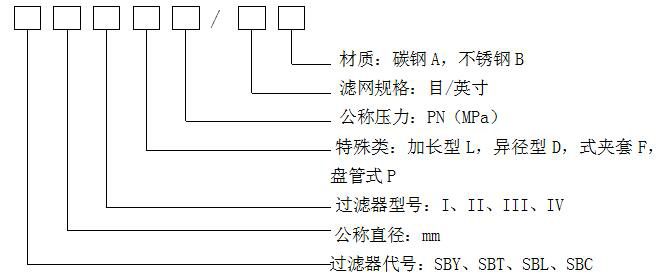 SBY:同徑Y型; SBT:同徑T型;SBC:臨時;SBL:籃式過濾器。